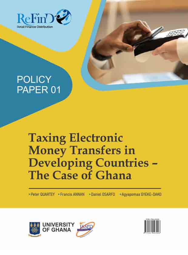 Recent decades have seen the proliferation of mobile phones and the strong performance of the electronic transfer industry. The industry has evolved from a niche offering in a small number of markets to a mainstream financial service. With low- and middle-income countries (LMICs) facing enormous challenges in revenue mobilisation due to the high rate of informality, governments have noted the prospects of imposing electronic transfer taxes as an effective and inexpensive way of increasing tax revenues. This paper aims to set the tone for discussions on the immediate effect of Ghana’s electronic transfer taxes on transaction volumes and values and agent activity. We compare Ghana’s case with other countries in Africa who also imposed electronic transfer taxes.